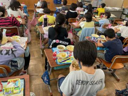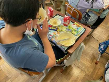 給食の時間は黙食を続けています。周りの友達と話さずに食べることで,じっくりと味わうことができているようです。