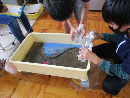理科の学習では,水がどのように流れているかを調べる実験をしました。