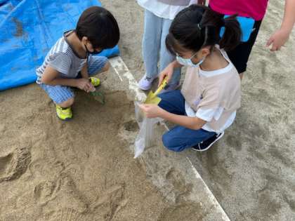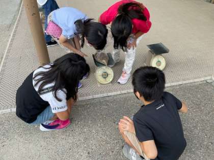 算数科の「重さ」の単元の学習で,1kgがどのくらいの重さか量って確かめました。実際に運動場の砂を使って確認しましたが,1kgは子ども達が思っているよりも重かったようです。
