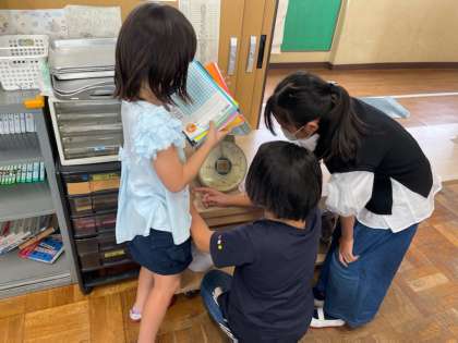 体感した1kgを基に,教室で様々な物の重さを予想して量る活動をしました。1kgの重さを大まかに把握できていたため,予想の重さと実際の重さが近い人がたくさんいました。