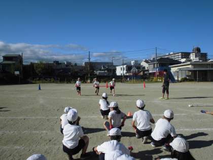 交流学級のお友だちと協力しながら,競技をしていました。
