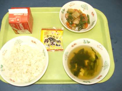 今日も子どもたちの大好きなメニューのひとつ「プリプリ中華いため」でした。昨日は、5年生が宿泊学習をしている「花脊山の家」に行ったのですが、5年生の子どもたちに明日の給食の献立を訊ねられたので「プリプリ中華いため」と答えると「えーずるいい」「プリプリ中華いため食べたかった」「プリチュー持ってきて」など、みんな残念がっていました。