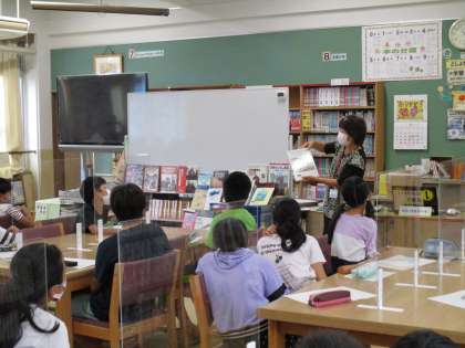 その後,子どもたちは各々関連図書のある書架や紹介された本を手に取り,席に戻って続きを読みながら,分かったことをプリントに記入するなど各自で学習を深めていました。