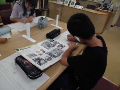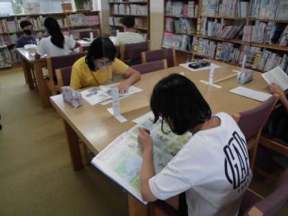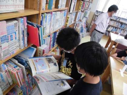 今日の総合的な学習の時間では,図書館へ行き「戦争」について,当時の生活の様子や,人々の暮らしについて,調べる学習をしました。
