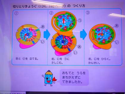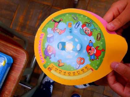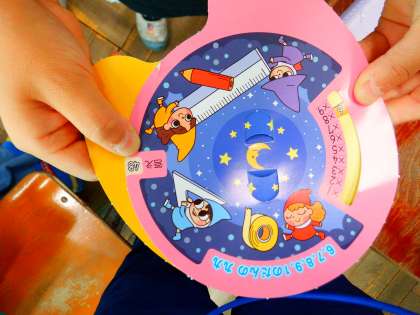 算数科で『かけ算』の学習をしています。教科書に付いているルーレットを使って,楽しみながら九九を覚えています。