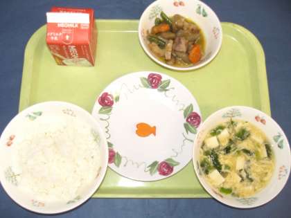 今日の筑前煮に入っていた牛蒡(ごぼう)の種類の中に今日野菜の「堀川ごぼう」があります。昔、堀川というところでたくさんとれたので、この名前がつきました。松の根っこのような形をしていて中に空洞があるのが特徴です。