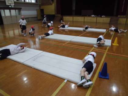 怖がることなく,転がったり跳んだりする活動を次々と楽しむ子どもたちでした。