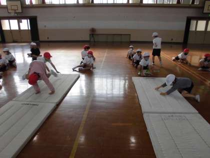 マットの準備も片付けも,友達と力を合わせて安全に取り組めました。