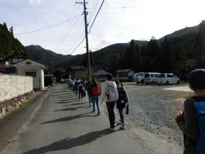 学校を出て,1時間ほどバスに揺られ,ハイキングの出発地点まで到着しました。