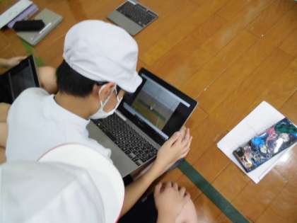 自分の演技が,美しくできているか,途切れずにできているか,一人一台GIGA端末を使って,友達と動画を撮影しながら確認しています。