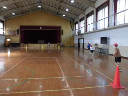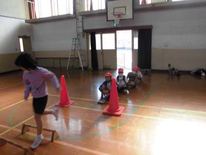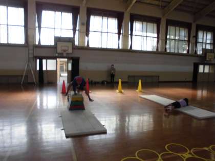 走ったり,自分の好きな技でマット運動をしながら楽しんでいます。