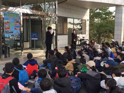 姫路市平和資料館に到着しました。これから講話を聞いたり、資料を見学したりします。