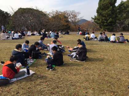 平和資料館の見学を終え、芝生広場でお弁当をいただきます。