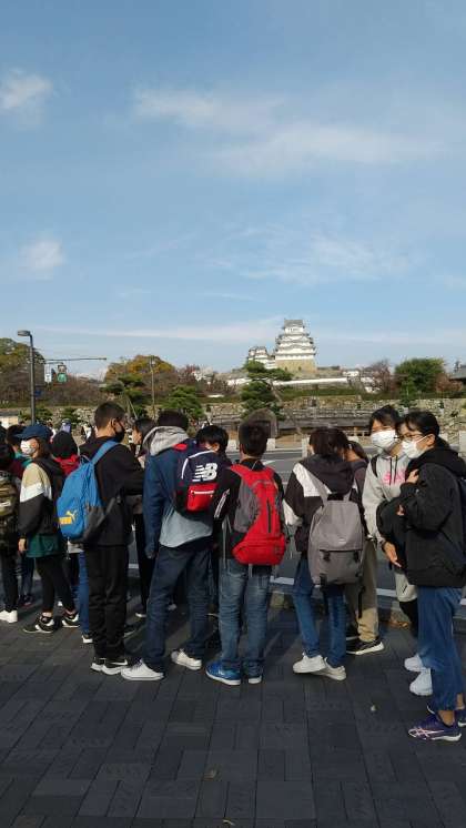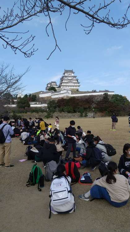 姫路城に到着しました。この後、クラス写真を撮ってグループで天守閣を目指します。