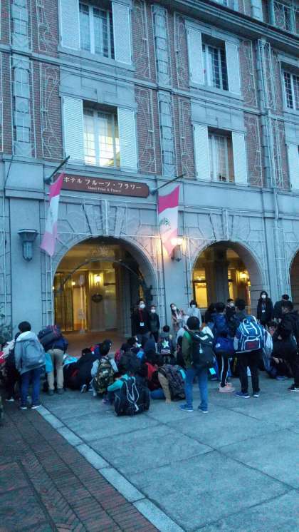 予定より少し遅くなりましたが、無事にホテルに着きました。入館式をして部屋に移動します。