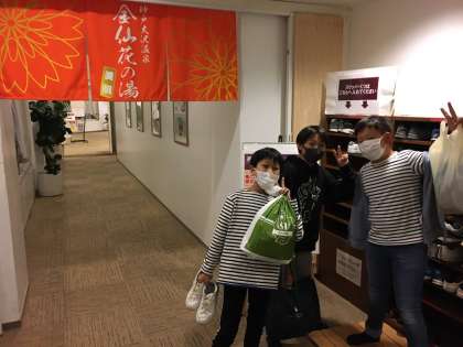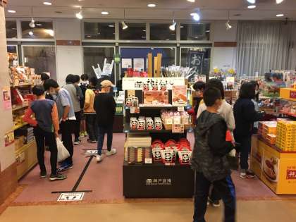 1組から順番にお風呂に入ります。待っているクラスは買い物の続きを楽しんでいます。