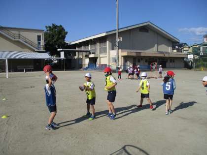 体育科「パスゲーム」の学習が終わりました。ボールを持ったら味方を探したり,ボールを奪われたらすぐに切り替えたりなど,1時間目と比べると,攻撃でも守備でもでいることが増えました。