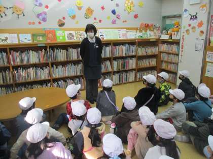 町探検で吉祥院図書館に行きました。はじめ,司書の方から吉祥院図書館を含む京都市図書館についての話を聞きました。京都市図書館19館に所蔵されている書籍をすべて合わせると189万冊もあるそうで,子どもたちから驚きの声が上がっていました。ちなみに189万冊すべてを積むと,京都タワー5本分の高さになるそうです。
