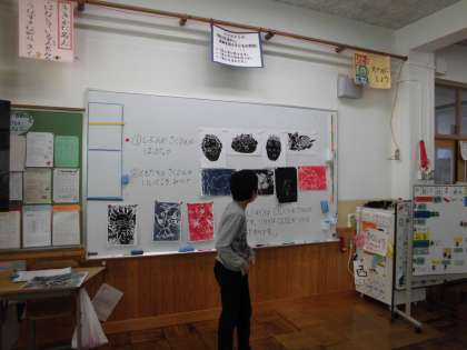 時間をかけて制作した版画絵の鑑賞会をしました。