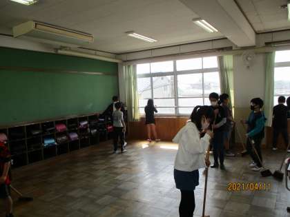 早速,新しい教室の学習環境を整えるために「大掃除」をしました。