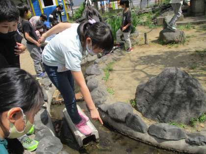 今日は,これまでに吉祥院小学校の中で見つけた生きものを思い出し,実際にどんな生き物がいるのか調べに行きました。