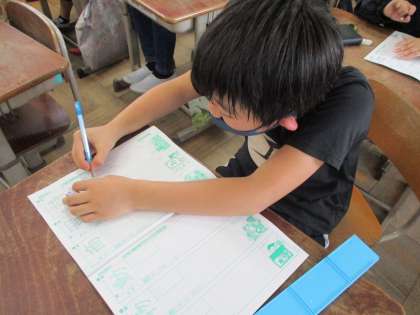 姿勢を整え,字のバランスや大きさに気をつけて,集中して取り組むことができました。