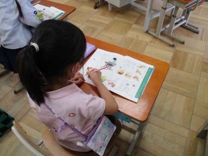 書くときの正しい姿勢を学習しました。