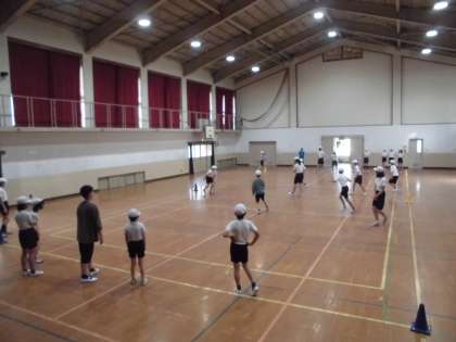 体育の時間に,ルールの確認やチームをどう決めるかなど,子どもたちだけで話し合い,フリスビードッジを行いました。相手のことを考えながら,上手に話し合いをすすめることができました。