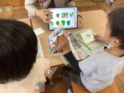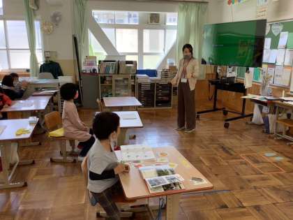 英語と生活単元学習の授業風景です。英語の授業ではみんな大きな声で発表ができて,授業者も楽しく授業ができました。生活単元学習では自分たちで選んだ野菜の看板を作りました。