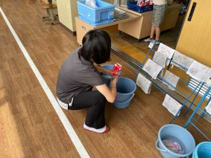 5月から,給食で飲んだ牛乳は,バケツで洗って給食室に返却するようにしています。こういった活動を通して,少しでもリサイクルに対する気持ちが育ってくれれば嬉しいです。