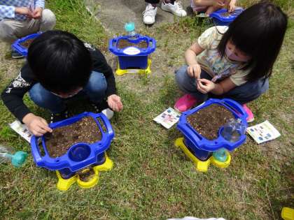 生活科の学習であさがおの種まきをしました。