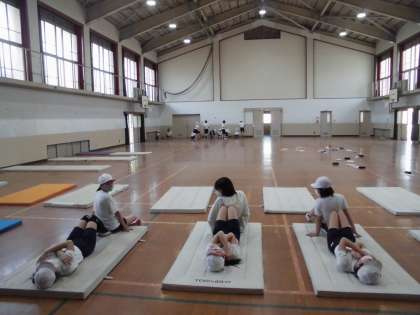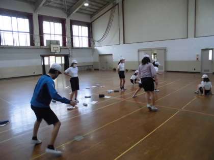体育館で反復横跳び,上体おこしなどを行いました。去年と比べて結果がよくなっていたようです。