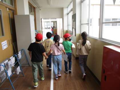 去年,自分たちが学校を探検した時のことを思い出しながら,1年生を優しくエスコートし,8つの部屋を回りました。