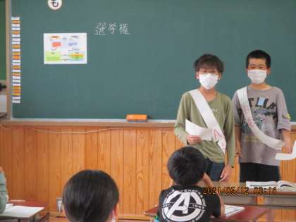 この日は,日本の代表を決める選挙のしくみについて,実際に演説を行いながら,みんなで話し合い考えました。