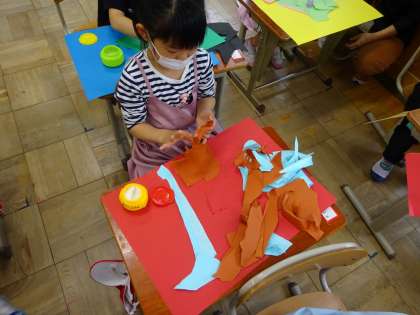 今日は前の時間にやぶいたり,ちぎったりした紙をならべて何に見えるか考えました。