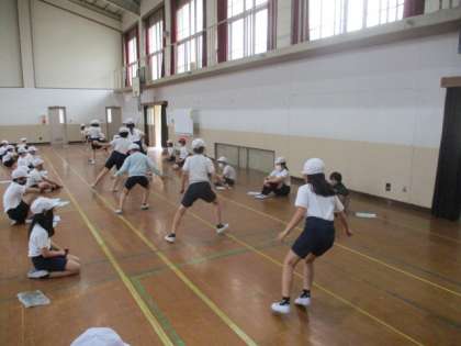 この日は,体育館で反復横跳びと上体おこしをしました。昨年に比べて回数が増え,喜んでいました。