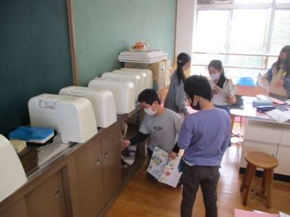 この日は家庭科室を探検し,たくさんの調理器具に加え,ミシンやアイロンなども見つけていました。どうやって使うんだろう?これからの学習が楽しみです。
