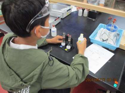 化学の教室では,液体Xの謎に迫りました。