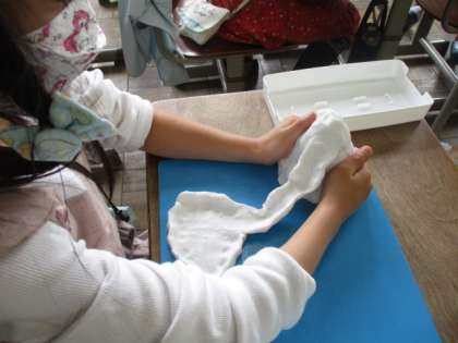 にぎってみると「羽のような形」になったり,「餃子」にそっくりだったり,「岩から水が流れていく」様子に見立てたり,いろいろな「にぎにぎ」が出てきました。