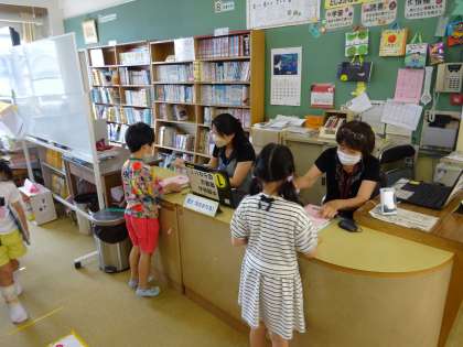 みんな自分で借りたい本を選んで借りることができました。
