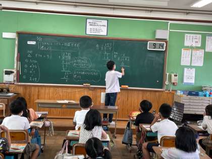 現在,算数科では「割り算の筆算」の学習を進めています。子ども達と大切にしている「割り算の筆算」のキーワードは「1.たてる」「2.かける」「3.ひく」「4.おろす」です。この手順で筆算を進めることを意識しています。ぜひ,お家でも割り算の筆算の問題を出してみて下さい。(出題の際は「2けた÷1けた」か「3けた÷1けた」でお願いします!)