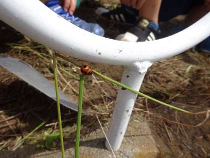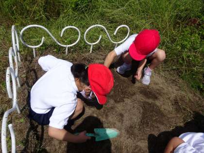 今日は雑草でいっぱいだったはたけをスコップで掘って根っこや草を取り除きました。ダンゴムシやテントウムシなどいろいろな虫たちを発見し,はたけ作りをしながら虫の観察も一緒にすることができました。