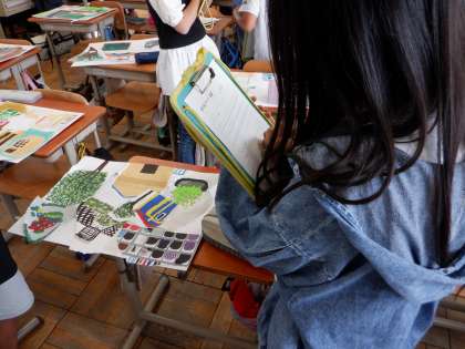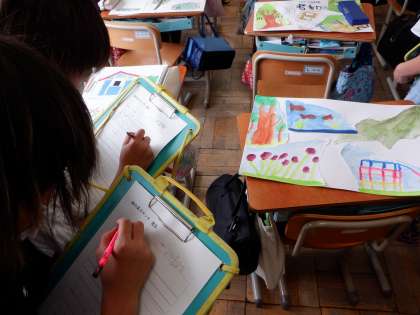 図画工作科「絵の具スケッチ」の学習で,お互いの作品を交流しました。それぞれの作品を見て回り,お気に入りの作品をじっくり鑑賞して,良いと思ったところや工夫していると思ったところをカードに書き記しました。自分の作品とも比較して,今後の作品づくりに活かそうという強い気持ちを抱いている人が多くいました。