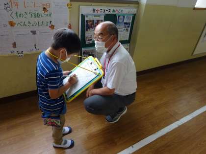 学校探検に行き,学校の中のいろいろな物と仲良くなったので,次は学校の中のいろいろな人と仲良くなるために,先生たちにインタビューに行きました。