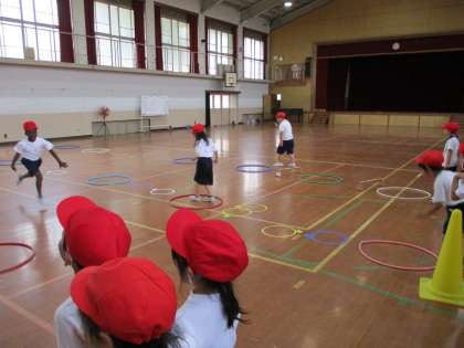 体育では,跳びあそびを楽しんでいます。