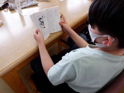 朝休み終わりの10分間や図書室に行った時,黙々と読書をする姿がよく見られます。様々な作品に触れ合う中で,読書の世界をひろげていって欲しいと思います。