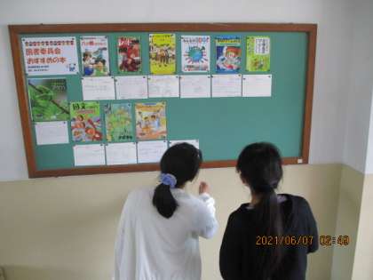 職員室の横の階段に,図書委員さんが作った本の紹介スペースができていました!