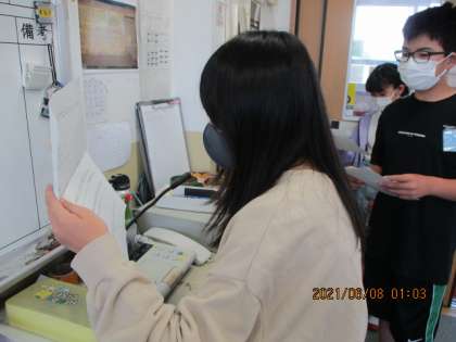 それぞれの委員長さんが,各委員会の取組について全校放送で伝えています。