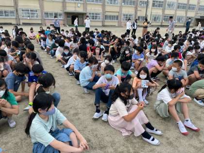 8日(水)の2時間目に避難訓練を行いました。今回は火災を想定した避難訓練でした。火災で怖いのはやはり煙です。煙を吸わないように,ハンカチを口と鼻にあて,低い姿勢で避難することを心掛けました。