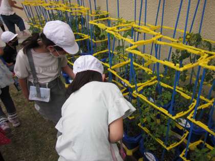 子どもたちのミニトマトの実が色づいてきました。実りが早い子どもは今週から収穫して家に持ち帰り始めています。自分のミニトマトはいつ持って帰れるかなぁと,気になる毎日です。